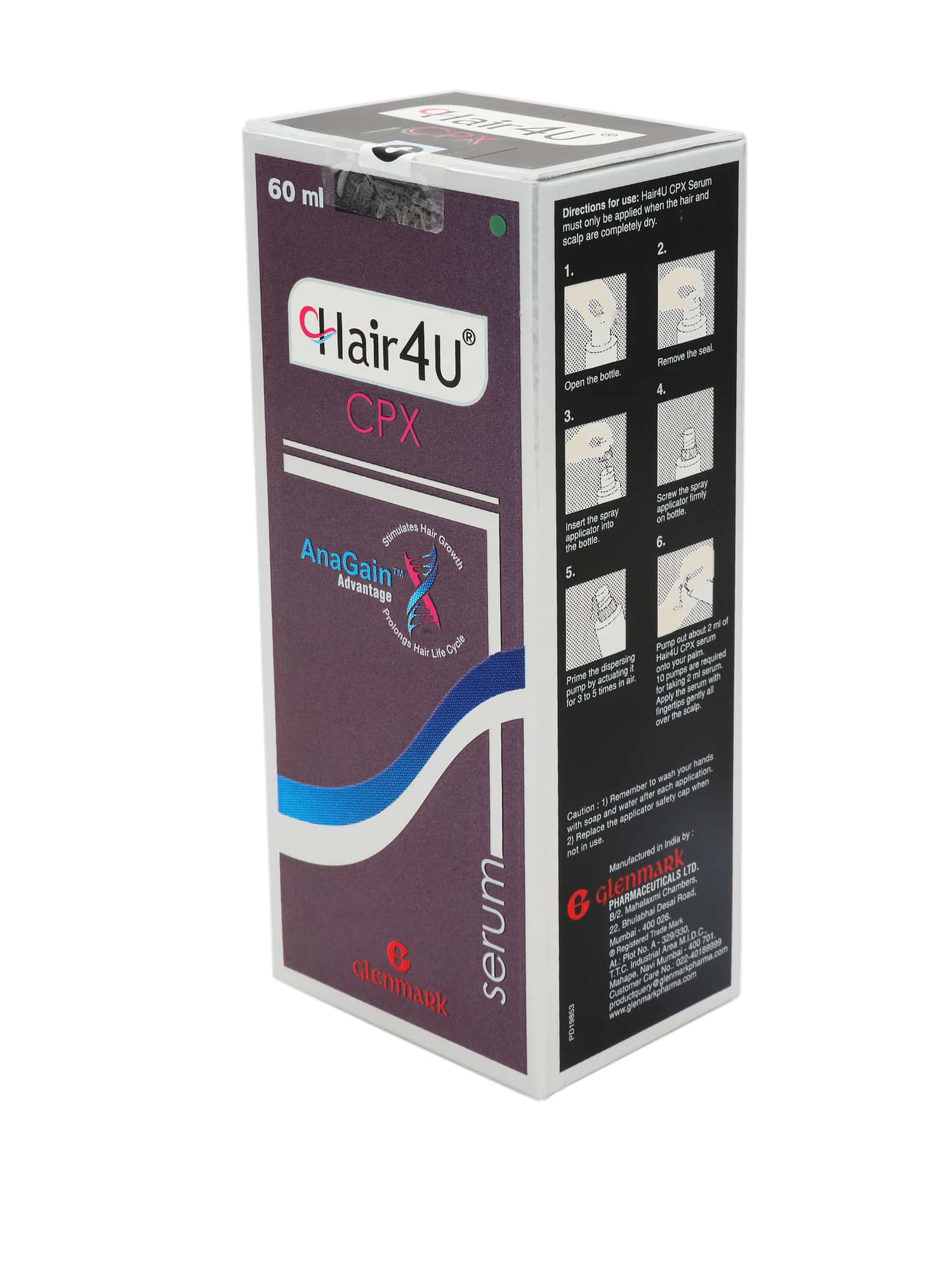 Buy best quality glenmark pharma hair 4u cpx serum. Use 2 ml of hair serum, once a day. New hair 4u 5% solution is a medicine used to treat common hereditary hair loss. Hair 4u f solution 60 ml. Each pump dispenses 0.2 ml of hair4u cpx hair serum;